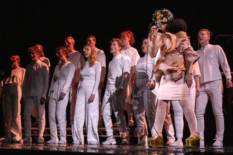 The Cornucopia production was designed by Bjork around a soundscape and opened with a 50-piece choir, all using Shure TH53 TwinPlex headsets