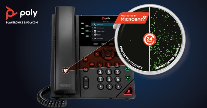 SANTA CRUZ, Calif. – Following the successful launch of Poly Rove DECT IP phones with built-in Microban, which brought antimicrobial protection to the frontlines, the Poly VVX x50 joins the growing list of Poly phones that actively reduce the growth of bacteria, 24 hours a day, 7 days a week.