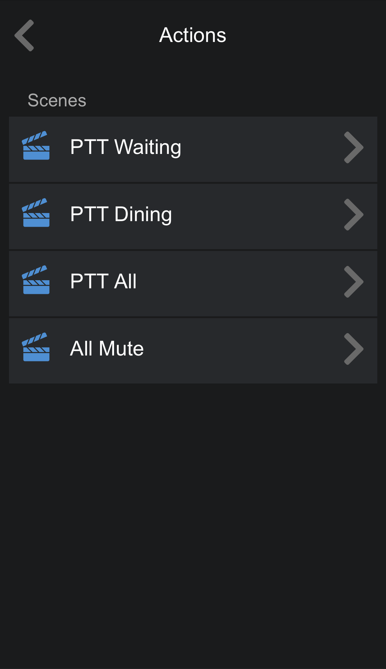 View of a Push to Talk Screen View of a Source Selection Screen View of an audio output level control view of a zone selector panel
