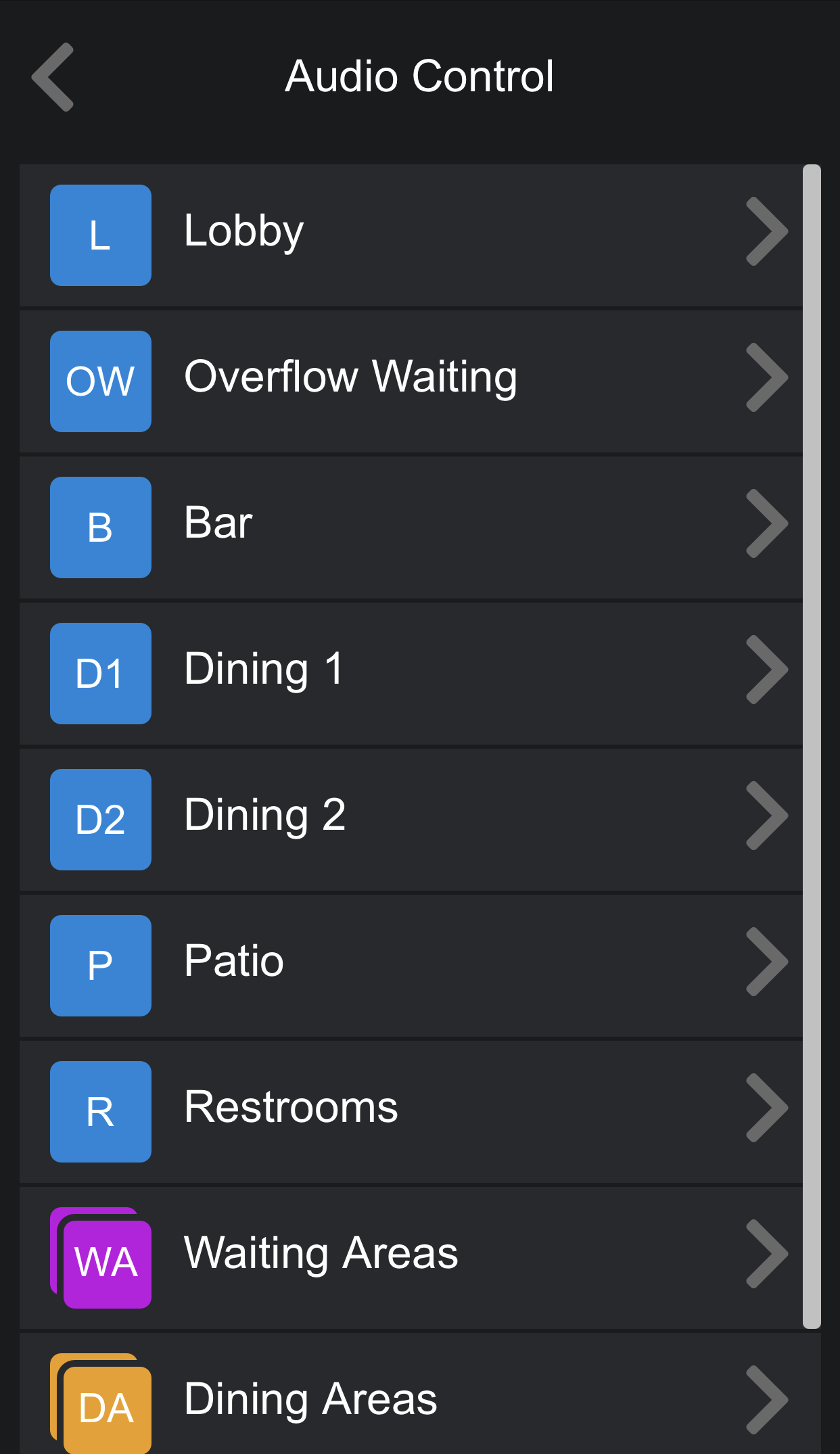 There is a control accessory that sets itself apart for me. The Atmosphere AZM products have a web server in it that also serves up control interfaces via webpages with no coding required. The pages are designed to work on mobile or handheld devices but also functions well on other size displays. Not only can these web pages automatically mirror the wall controllers, one can also easily create unique virtual controllers easily in the software. The integration that this feature enables cannot be overlooked. This allows the system to be controlled from many point-of-sale solutions in restaurant and retail spaces using browser-based interfaces. Now instead of having to worry about the accessibility to controls in dining areas in a restaurant, the controls can be placed into the point of sale. Below are some examples I quickly created using the web interface of the Atmosphere. The control interfaces basically create themselves based on the configuration of the hardware.