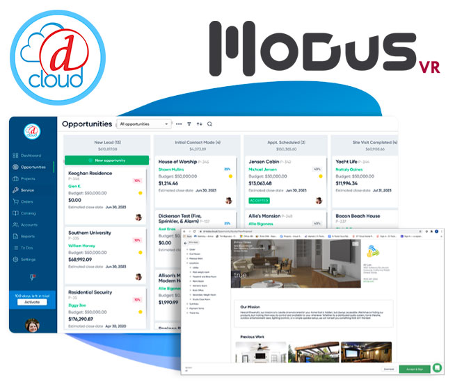 D-Tools, the leading provider of business management software for electronic systems contractors, has partnered with Modus VR to provide integrators with the opportunity to include virtual reality walk-throughs of project designs in their D-Tools Cloud client proposals. Modus360 software adds another effective sales component to D-Tools’ award-winning business management solution, helping dealers land more jobs and keep all stakeholders—systems integrators, designers, architects, builders, and homeowners—actively engaged with and collaborating on the project. Designs come to life in immersive, 360 views, helping customers envision the end-results and enabling dealers to experience device locations, furniture arrangements, etc. Modus360 landscapes can now be output and embedded in D-Tools Cloud proposals, making it easy for integrators and end-users to access.