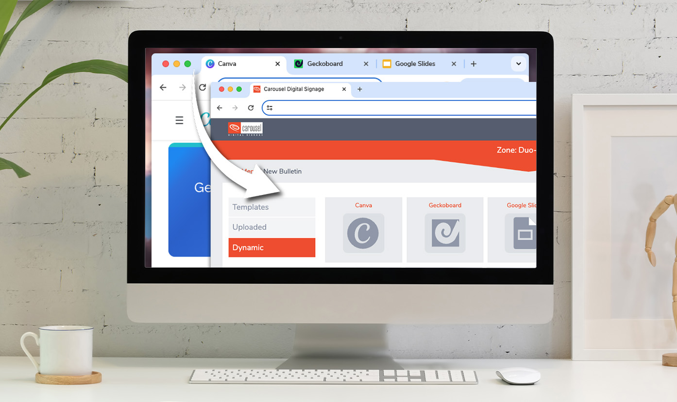 Carousel Digital Signage has expanded its content creation capabilities by integrating with Canva, Google Slides, and Geckoboard. This allows users to create and publish content seamlessly using these popular tools.