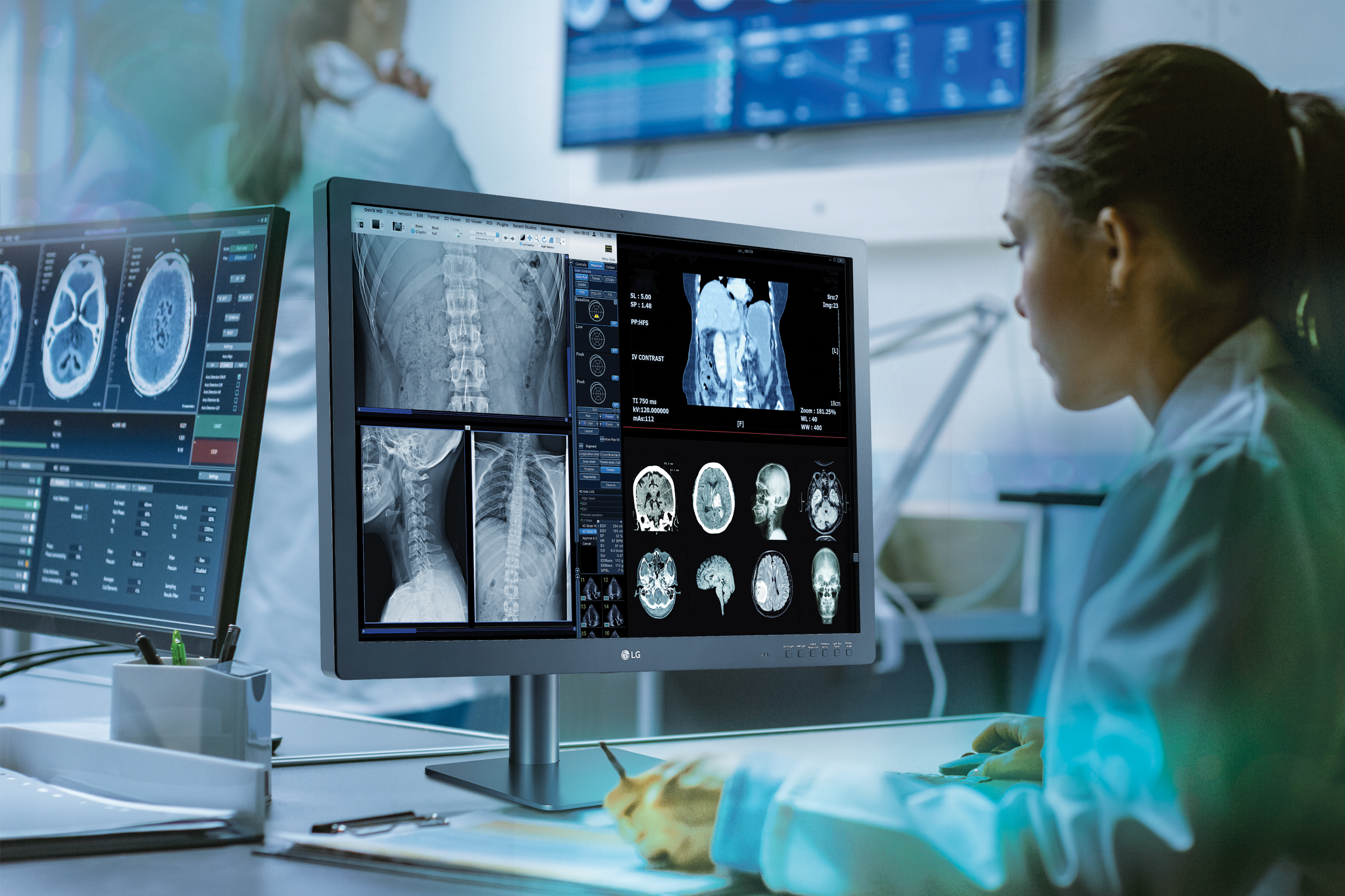 The 31.5-inch 32HL512D 8MP Nano IPS diagnostic display is designed to help facilitate diagnosis of medical images. The monitor features multi-resolution and clinical pathology modes, auto luminance calibration, PBP/dual controller, and an ergonomic stand. The 178-degree wide viewing angle enables clinicians to more accurately read multiple screens without loss in contrast ratio. Its built-in backlight sensor dynamically measures and maintains calibrated DICOM brightness that enhances diagnostic reading consistency and confidence over time.