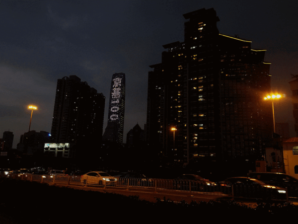 The 100-story KK100 skyscraper in Shenzhen, China, features a nearly transparent mesh DVLED system that transforms its exterior into a massive display after dark. This display showcases a blend of visually captivating, Matrix-like waterfall effects and slogans to encourage visitors and prospective tenants.